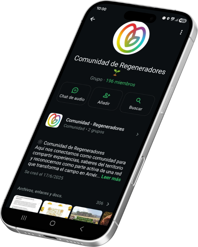 Contamos con una comunidad en WhatsApp de +200 regeneradores de distintos países de América Latina.